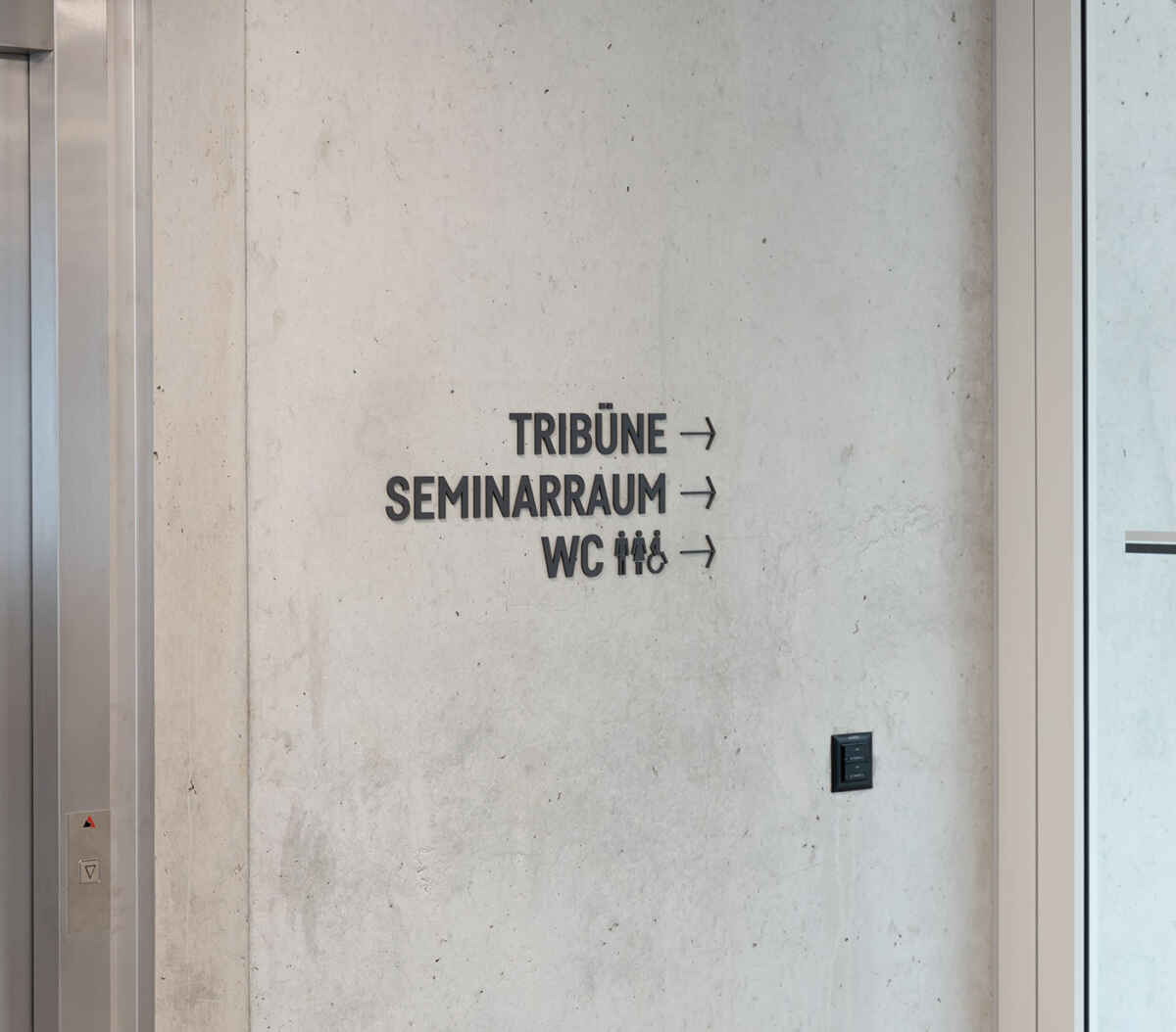 Im Rahmen der Umbaumassnahmen (Umstrukturierung Harmos) entstand unter Einbezug der Denkmalpflege eine Signaletik für das gesamte Schulgelände.